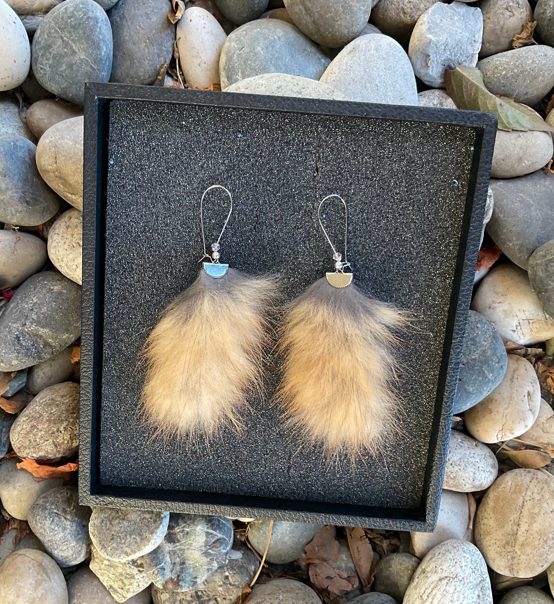 Genuine red fox fur earrings, handcrafted by Jessica Lavallee (Metis/Cree)