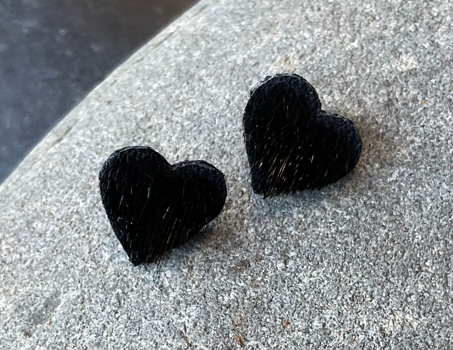 Genuine sealskin heart shaped stud earrings, by Sharron Jones (Inuk) Available in: dark red, cream and black.